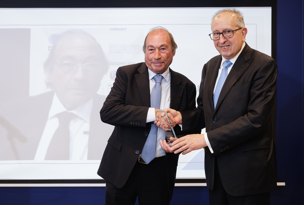 En la imagen: Agustín Llarás, Consejero Delegado de Grupo Solgepan, recibió el premio de manos del expresidente de la Asociación de Franquicias de Cataluña, Xavier Vallhonrat.