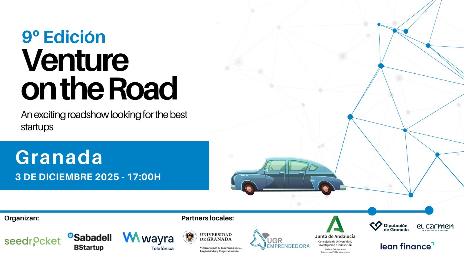 Venture on the Road Andalucía se celebrará el próximo 3 de diciembre en la incubadora de empresas El Carmen, donde se anunciará la startup ganadora. La convocatoria ya está abierta hasta el 24 de noviembre a través de la web de Venture On The Road. Además, cuenta con la colaboración de los socios locales como son: Universidad de Granada, Diputación de Granada, UGR Emprendedora, la Incubadora El Carmen, Lean Finance y Andalucía Emprende.